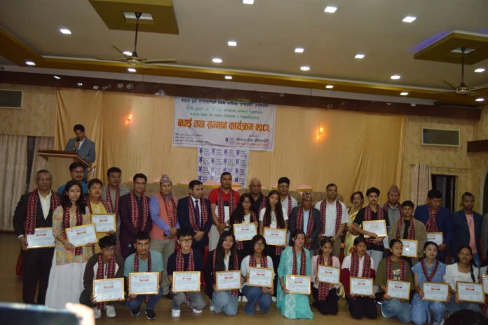 भक्तपुर । नेपाल प्रेस सोसाइटीको प्रथम वार्षिकोत्सव आज एक विशेष समारोहबीच सम्पन्न भएको छ। कार्यक्रमको अवसरमा भक्तपुर जिल्लाभरबाट ४ जीपीए ल्याउने ३० जना विद्यार्थीलाई सम्मानपत्र र प्रमाणपत्र वितरण गरिएक...